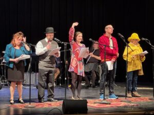 It’s the 19th year of a unique performance, where the “live studio audience” attends an old-time “radio” show set in the 1920s-1970s. Original sketches, from Joe Tanner, PI to Tales from the Tomb, to Rocket Space Quest, and more, this year, all the way back to the Roaring Twenties. Great songs of the era, including Come Fly With Me, I Can See Clearly Now, All of Me, The Best Things in Life are Free, and many more, with a live band onstage. Wacky products like Gas Station Coffee from ACME. And hilarious Sound Effects folks! But it’s only on stage, and not really on the radio. Season sponsor is Kennebec Savings Bank.